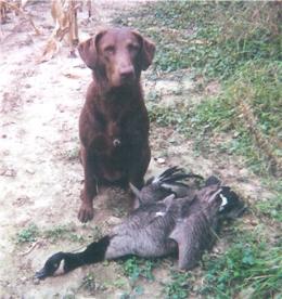 | At 12 yrs old Kahoots still did her share of goose work...and had a blast doing it too! We sure do miss her and eagerly await her granddaughter joining us! |