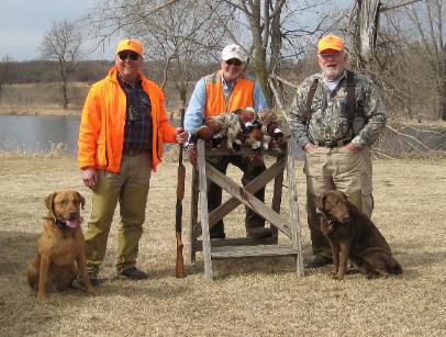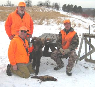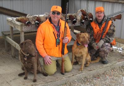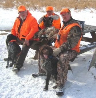 | ...Can't forget Tubby, Koots and Woodie's hunting buddies... Ember the Short hair, and Grizz the Griffon that round out the... Motley crew . The dogs do a bang up job of putting birds on the table, and give the men that hunt over them great enjoyment! |